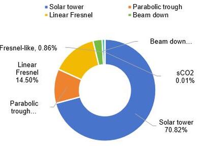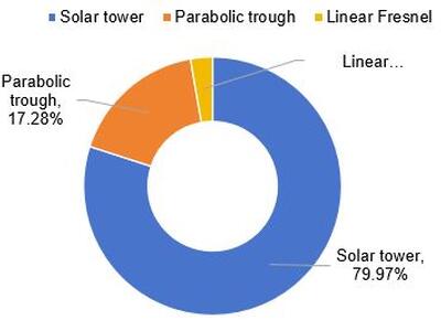 In contrast, in major overseas countries and regions, trough concentrating dominated with a share of about 79.97%, followed by tower concentrating (17.28%) and linear Fresnel concentrating (2.75%).