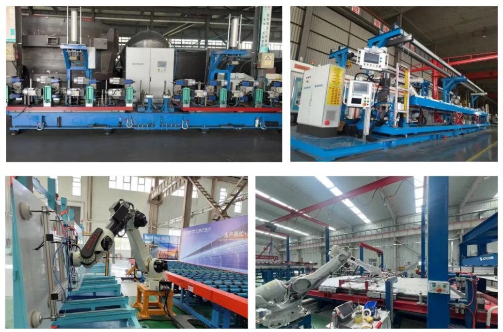 (1) Intelligent production lines for mirror panel cleaning, drying, gluing, pressing, curing, and palletizing