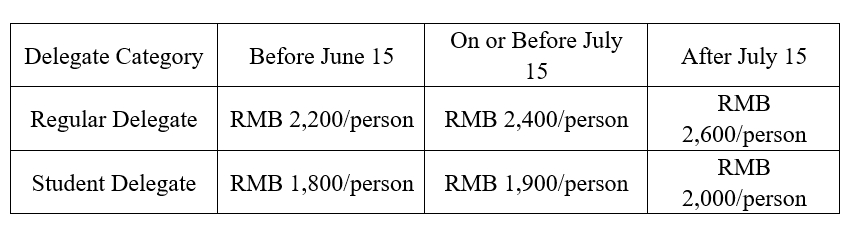 Notes: Groups of more than three people (excluding three) from the same unit enjoy a 10% discount on registration fees. The dates in the table refer to the actual payment date. Registration fees for delegates from sponsoring and exhibiting organizations shall be negotiated separately.